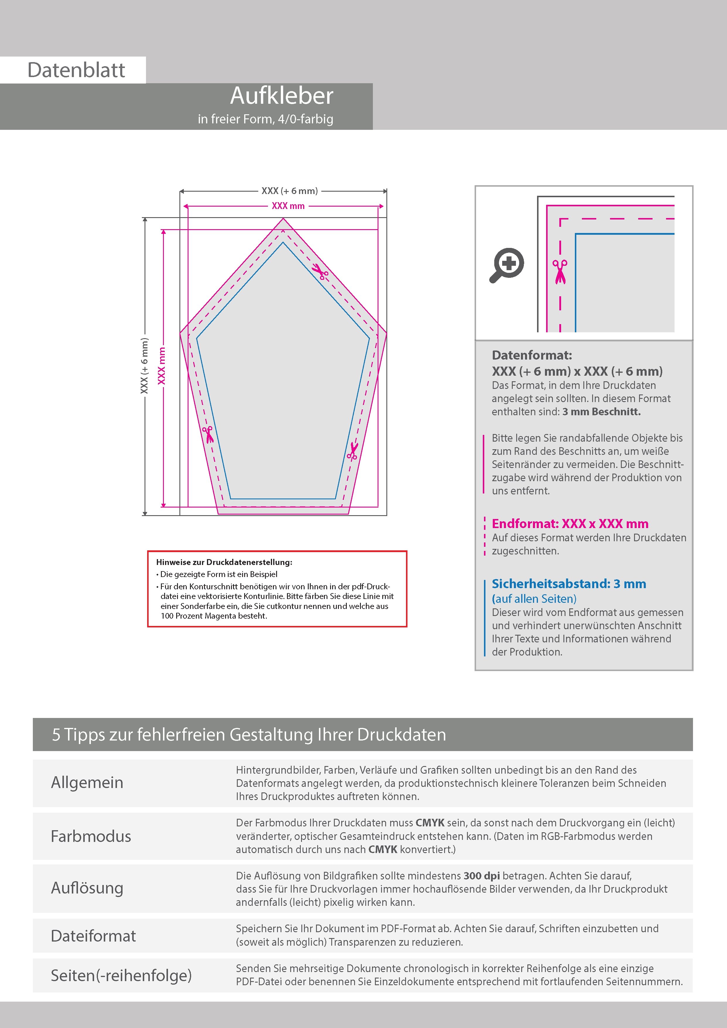 Aufkleber extrem stark klebend 4/0 farbig bedruckt in Frei-Form (eine Stanzform möglich)